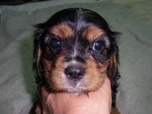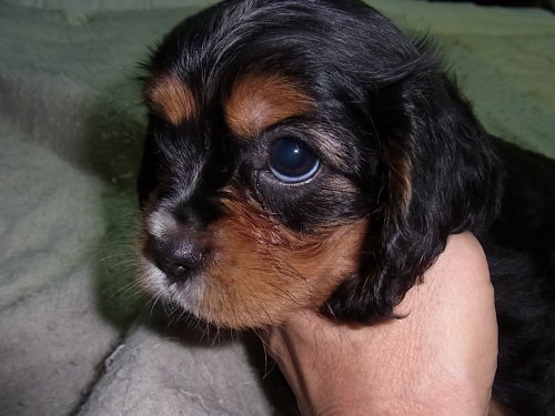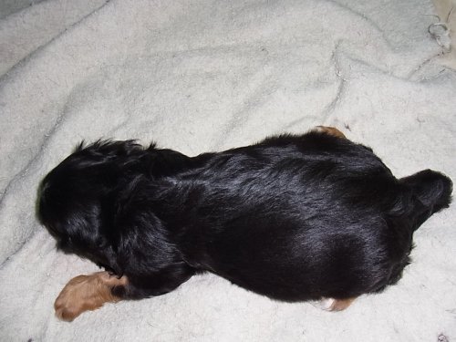 コメント | 父親 ブレンハイム 母親 ブラック&タン 胸元に白毛があり、顔も細い白毛の筋があります。 顔の白毛はだんだん目立たなくなると思ってますが。 |