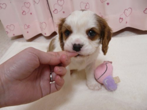 2匹目のキャバリアの購入を検討し、兵庫県内のブリーダーさんを探したところ太田ブリーダーとご縁があり購入させて頂きました。 清潔に愛情を込めて仔犬も母犬もお世話されており、大変安心しました。 受取日まで仔犬に会えなくても、youtubeで動画を更新して下さったり、メールを下さったり、仔犬の近況がわかり嬉しかったです。 受取日には家で育てるための餌やミルクを用意して下さり、今までのレポートまで頂き感激しました。 飼育し始めてからも育て方の相談に乗って下さり、至れり尽くせりです。 太田ブリーダーの温和な人柄で今後ともキャバリアの購入はこちらでお願いしたいと思いました。 いつもありがとうございます。(兵庫県 女性)