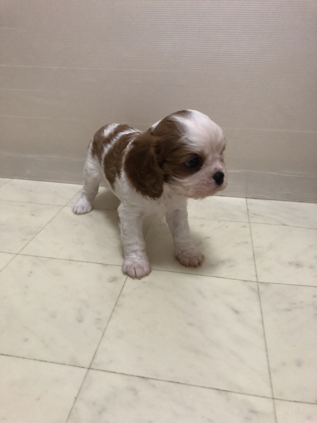 コメント | とっても可愛い男の子です♡ 女の子のような甘いお顔でとってもキュート。 お鼻も短くお目々も黒々な真ん丸どんぐりお目々です。 また柄の入り方も大変良く、茶色の濃さもしっかりと濃く、毛量も豊富ですので将来はゴージャスな雰囲気になると思います。 両親共に英国系の血統になります。 キャバリアは目頭に白目が出る子が多い印象ですが、我が家のキャバリアは白目が出ません。 またお口周りにシミや成長過程でソバカスが出る子も多いですが、大人になってもキレイな口元です。 先祖代々白目やシミソバカスのある遺伝子は排除してブリーディングしています。 またキャバリアは元々大変大人しい犬種ですが、その反面ビビリさんが多いので性格にもこだわり、明るくて人懐こい子に育つように母犬や教育係の犬達と共にベビー達としっかりと関わって育てております。 お引渡しまでに色々なことを体験しながら、新しいお家に行ってからもベビーが困らないように過ごしております。 現在離乳食にも興味を持ち始め食べてくれています。 もちろんママの母乳はしっかり飲んで育っております。 当方のブログやInstagramにはたくさん画像や動画を掲載しています。 こちらに動画を載せられるようですが、載せ方がわからず掲載出来ず申し訳ありません。 毎日とても元気に過ごしております。 お引渡しは1月下旬ごろを予定しております。 当方は遠方からのお客様が大変多くゆっくりとご見学いただきたい為、お客様は1日一件のみとさせていただいております。 週末をご希望の方が圧倒的に多い為、週末のご見学を希望の方はお早めにご予約ください。 生涯家族の一員として可愛がってくださる方とご縁があると嬉しいです。 |