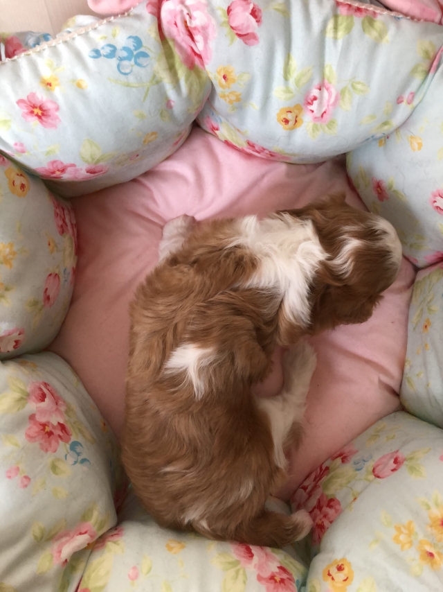 愛情を込めて大切に育てておられる、とても信頼のできるブリーダーさんです。初めて犬を飼育するので不安もありましたが、飼育やしつけ方法だけでなく、子犬の健康面や今後起こりうる可能性のある病気の話まで大変詳しく教えて下さいました。有り難いのは、こちらから尋ねなくてもお話くださる所でした。とてもオープンなのでこちらも安心して子犬(キャバリア)を引き取る事ができました。大阪へ帰る新幹線の中でもずっと大人しく遠方だからと諦めずに良かったと思いました。個体差もあるかも知れませんが、引き取ったキャバリアちゃんは、夜泣きも朝泣きもするとこなく穏やかに過ごせる子なので、生まれた時から大事に育てられた賜物では無いかな、と思いました。(大阪府 女性)
