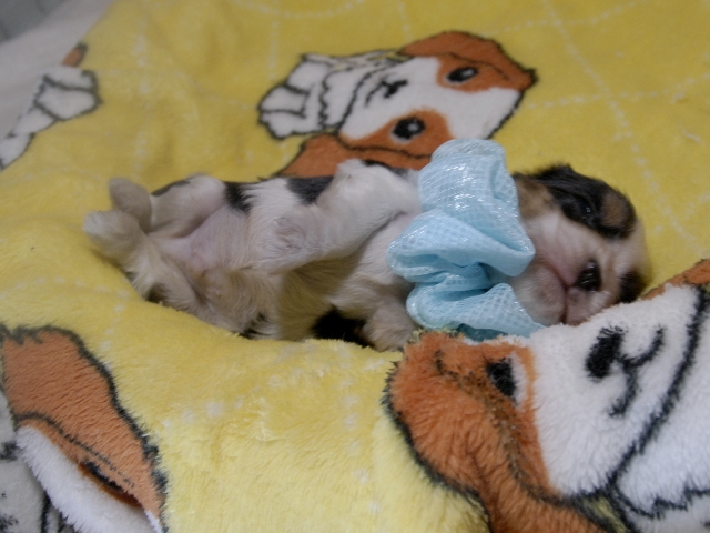 コメント | お父さんはJKCチャンピオンの家斎君、お母さんはチャンピオン直子ヒンギスちゃんから生まれダンディーな男の子です。(水色リボン君) 健康状態は、問題有りません。 すくすく育っています。 特典として、平日割引(2万円)見学並びに契約をして頂いた方。 土日祝日割引(1万円)見学並びに契約をして頂いた方、ジャンケンで勝ったら値引きします。 |