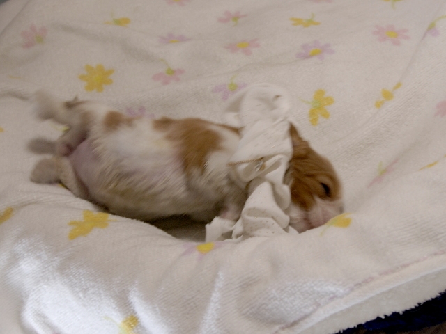 この度はとっても元気な子をありがとうございました。 見学の際は駅まで迎えにきていただき、説明もとても丁寧で安心しました。 空輸で送っていただき、ありがとうございました。 迎えてから一週間が経ち、家にも慣れて、へそ天で寝ています。 トイレトレーニングも、来た時から8割できていて、今ではほとんど失敗しなくなりました。 可愛く元気で、毎日元気に飛び跳ねています。(奈良県 女性)