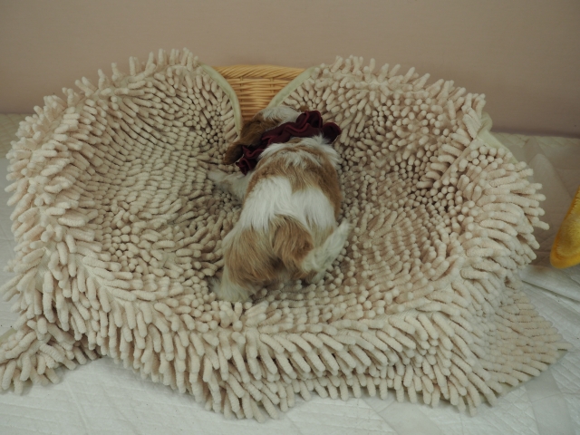 この度はとっても元気な子をありがとうございました。 見学の際は駅まで迎えにきていただき、説明もとても丁寧で安心しました。 空輸で送っていただき、ありがとうございました。 迎えてから一週間が経ち、家にも慣れて、へそ天で寝ています。 トイレトレーニングも、来た時から8割できていて、今ではほとんど失敗しなくなりました。 可愛く元気で、毎日元気に飛び跳ねています。(奈良県 女性)