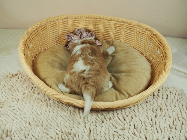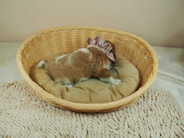 この度はとっても元気な子をありがとうございました。 見学の際は駅まで迎えにきていただき、説明もとても丁寧で安心しました。 空輸で送っていただき、ありがとうございました。 迎えてから一週間が経ち、家にも慣れて、へそ天で寝ています。 トイレトレーニングも、来た時から8割できていて、今ではほとんど失敗しなくなりました。 可愛く元気で、毎日元気に飛び跳ねています。(奈良県 女性)