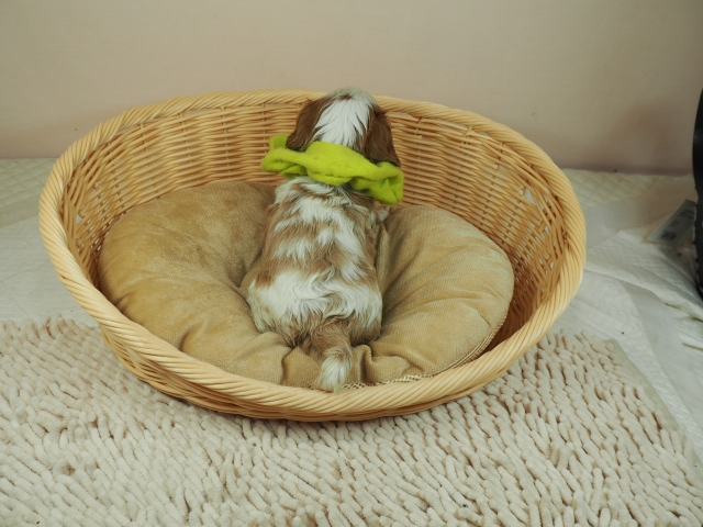 この度はとっても元気な子をありがとうございました。 見学の際は駅まで迎えにきていただき、説明もとても丁寧で安心しました。 空輸で送っていただき、ありがとうございました。 迎えてから一週間が経ち、家にも慣れて、へそ天で寝ています。 トイレトレーニングも、来た時から8割できていて、今ではほとんど失敗しなくなりました。 可愛く元気で、毎日元気に飛び跳ねています。(奈良県 女性)