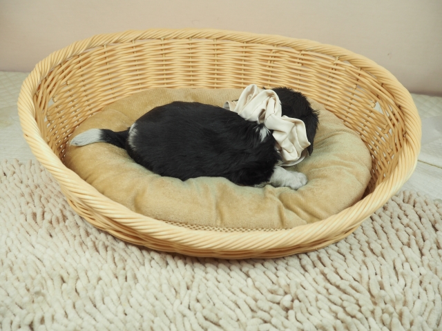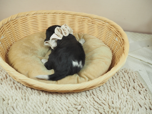 この度はとっても元気な子をありがとうございました。 見学の際は駅まで迎えにきていただき、説明もとても丁寧で安心しました。 空輸で送っていただき、ありがとうございました。 迎えてから一週間が経ち、家にも慣れて、へそ天で寝ています。 トイレトレーニングも、来た時から8割できていて、今ではほとんど失敗しなくなりました。 可愛く元気で、毎日元気に飛び跳ねています。(奈良県 女性)