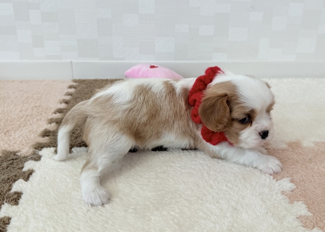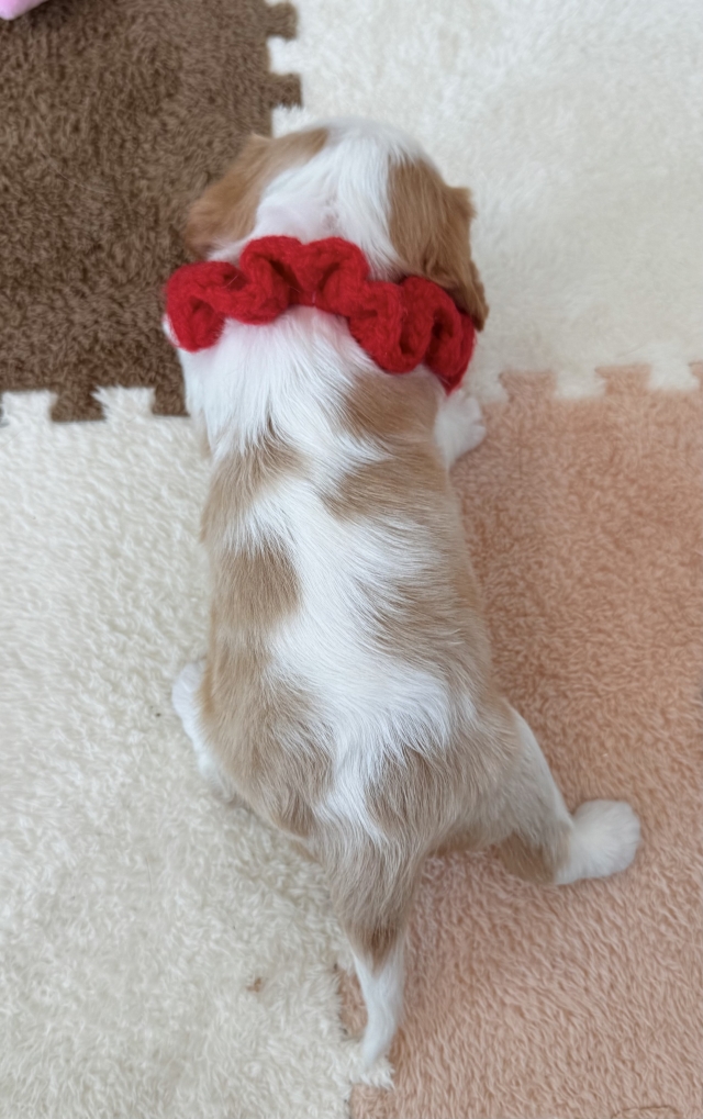 コメント | 父親:ブンくん(チャンピオン直子) 母親:マリモちゃん(チャンピオン直子) 性別:♀ 区別:赤 健康状態:良好 両親の遺伝子検査:クリア 【キャバリアの性格】 犬を初めて飼う方にお勧めな犬種! とても優しい性格の子が多いためご家族とも先住犬とも仲良くなりやすいです! 社交的な部分もあり遊ぶことも大好きな犬種です! ※同胎であっても成長過程により価格変動します またお引き取りに関しましては原則、生後60日経過後とさせていただいております! |