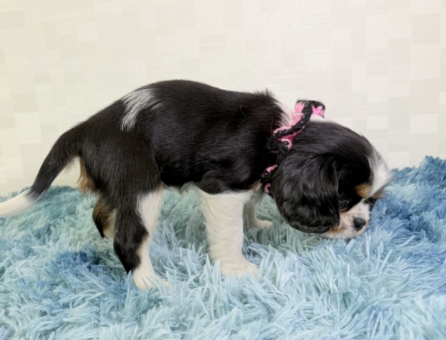 コメント | 父親:ペルくん(インターチャンピオン) ※CUTIE PLANET 鈴木ブリーダー様所有のワンちゃんです 母親:エリザベスちゃん(チャンピオン直子) 性別:♀ 区別:ピンク黒ぶちリボン 健康状態:良好 【キャバリアの性格】 犬を初めて飼う方にお勧めな犬種! とても優しい性格の子が多いためご家族とも先住犬とも仲良くなりやすいです! 社交的な部分もあり遊ぶことも大好きな犬種です! ※同胎であっても成長過程により価格変動します またお引き取りに関しましては原則、生後60日経過後とさせていただいております! |