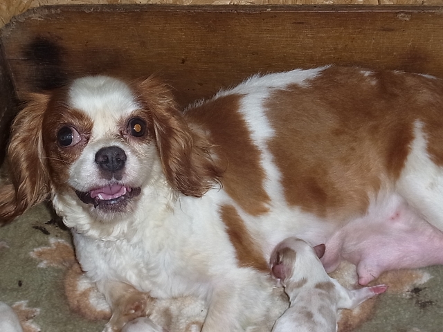コメント | 父親 ブレンハイム 母親 ブレンハイム *両親共、遺伝子検査済でアフェクテッドの子は生まれていません。 キャバリア大好き、もしくは関心をお持ちの方のみ、気軽に気さくに何でもお問い合わせください。 キャバ達と直に遊べます。 遠方の方もご相談ください。 神経質、心配性の方はご遠慮願います。 |