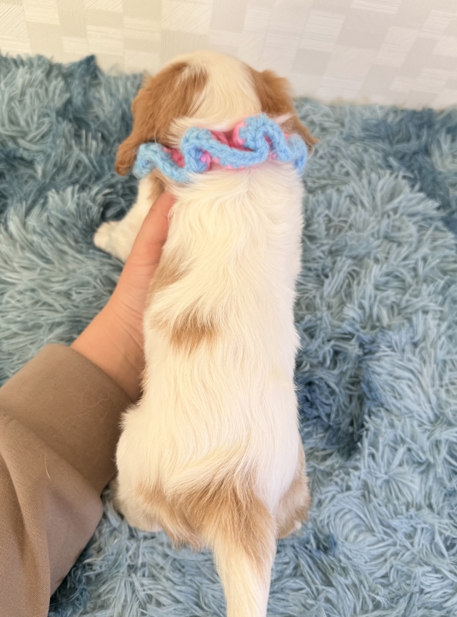 | コメント | 父親:イエハルくん(JKCチャンピオン) 母親:カルチェちゃん(チャンピオン直子) 性別:♀ 区別:ピンク青ぶちリボン 健康状態:良好 両親の遺伝子検査:クリア 【キャバリアの性格】 犬を初めて飼う方にお勧めな犬種! とても優しい性格の子が多いためご家族とも先住犬とも仲良くなりやすいです! 社交的な部分もあり遊ぶことも大好きな犬種です! ※同胎であっても成長過程により価格変動します またお引き取りに関しましては原則、生後60日経過後とさせていただいております! |