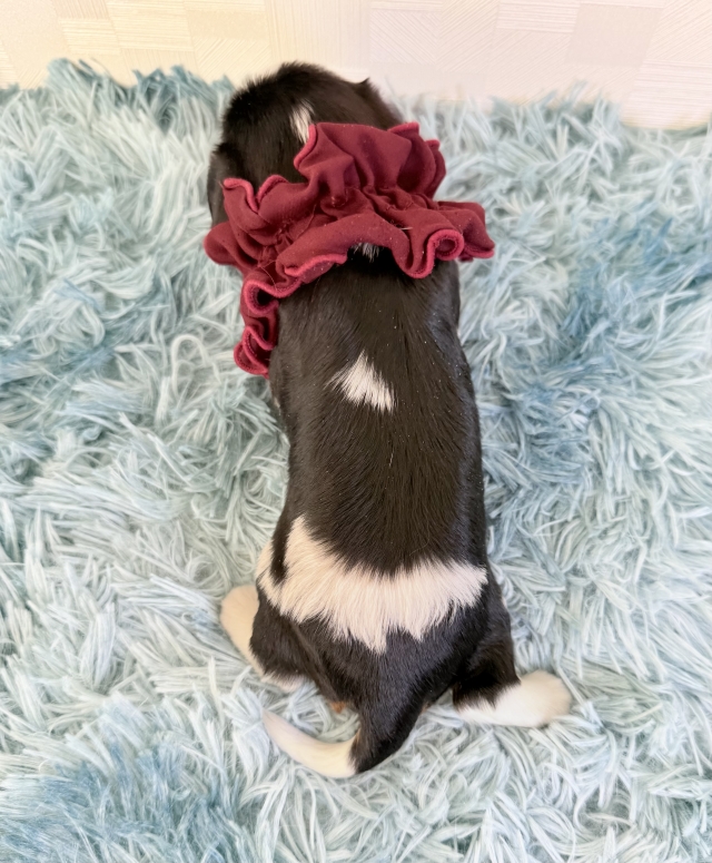 この度はとっても元気な子をありがとうございました。 見学の際は駅まで迎えにきていただき、説明もとても丁寧で安心しました。 空輸で送っていただき、ありがとうございました。 迎えてから一週間が経ち、家にも慣れて、へそ天で寝ています。 トイレトレーニングも、来た時から8割できていて、今ではほとんど失敗しなくなりました。 可愛く元気で、毎日元気に飛び跳ねています。(奈良県 女性)
