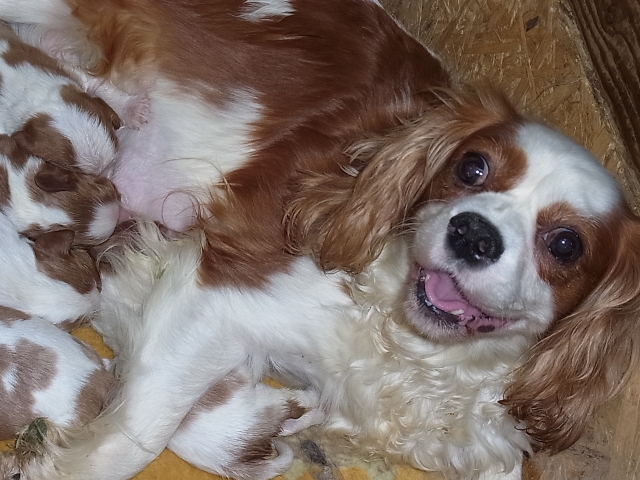 橋本さんはキャバリアのプロでとても冗談大好きで初めての電話の際から毎回楽しくお話させていただきました。待望のお迎えの際も先輩キャバリアちゃんたちが賑やかに迎えてくれて(キャバリア祭り笑)、子犬のパパママにも会わせていただき感激しました。ちなみに橋本さんちのキャバリアちゃんたちはみんな美男美女でかわいい子ばっかりです。橋本さんの優しくキャバ愛溢れるお人柄も決め手にもなりました。子犬は夜鳴きもせず当日から元気いっぱいで毎日おてんば発揮してます笑、これからもずっと大切に育てていきます!また子犬が落ち着きましたら橋本さんとキャバちゃんたちに会いに素敵な尾道に里帰りさせてもらいたいなぁと企んでおります笑、本当にありがとうございました! (京都府 女性)